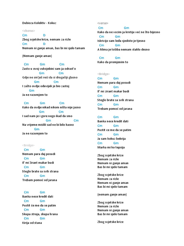 Dubioza Kolektiv Kokuz Tekst / Podbor akkordov dlya pesni dubioza kolektiv kokuz. Dubioza Kolektiv Kokuz Tekst - Ja sam kokuz bekrija, marka mi ko tepsija.